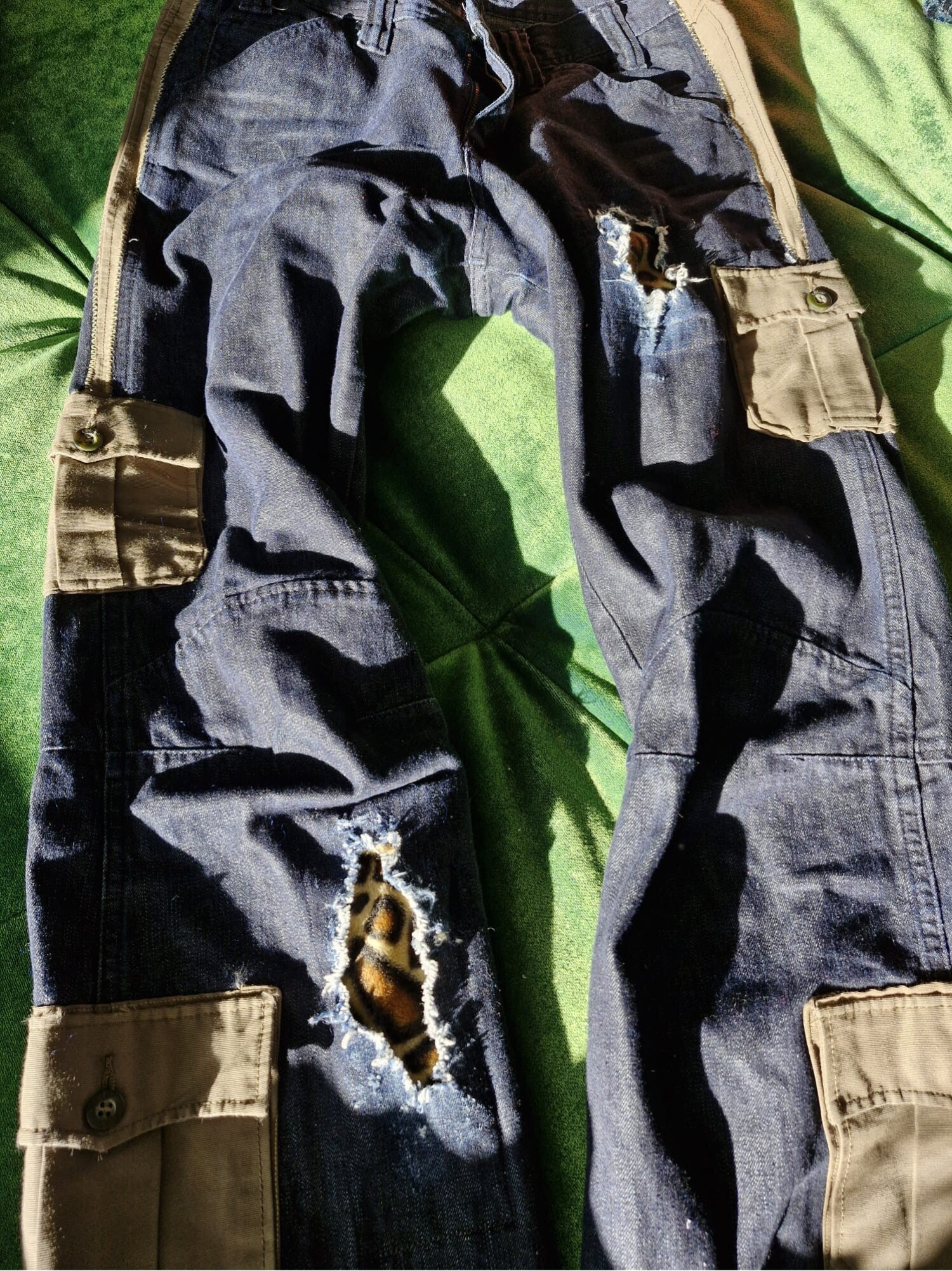 Freihand Bemalung auf Jeanshose mit Acryl.